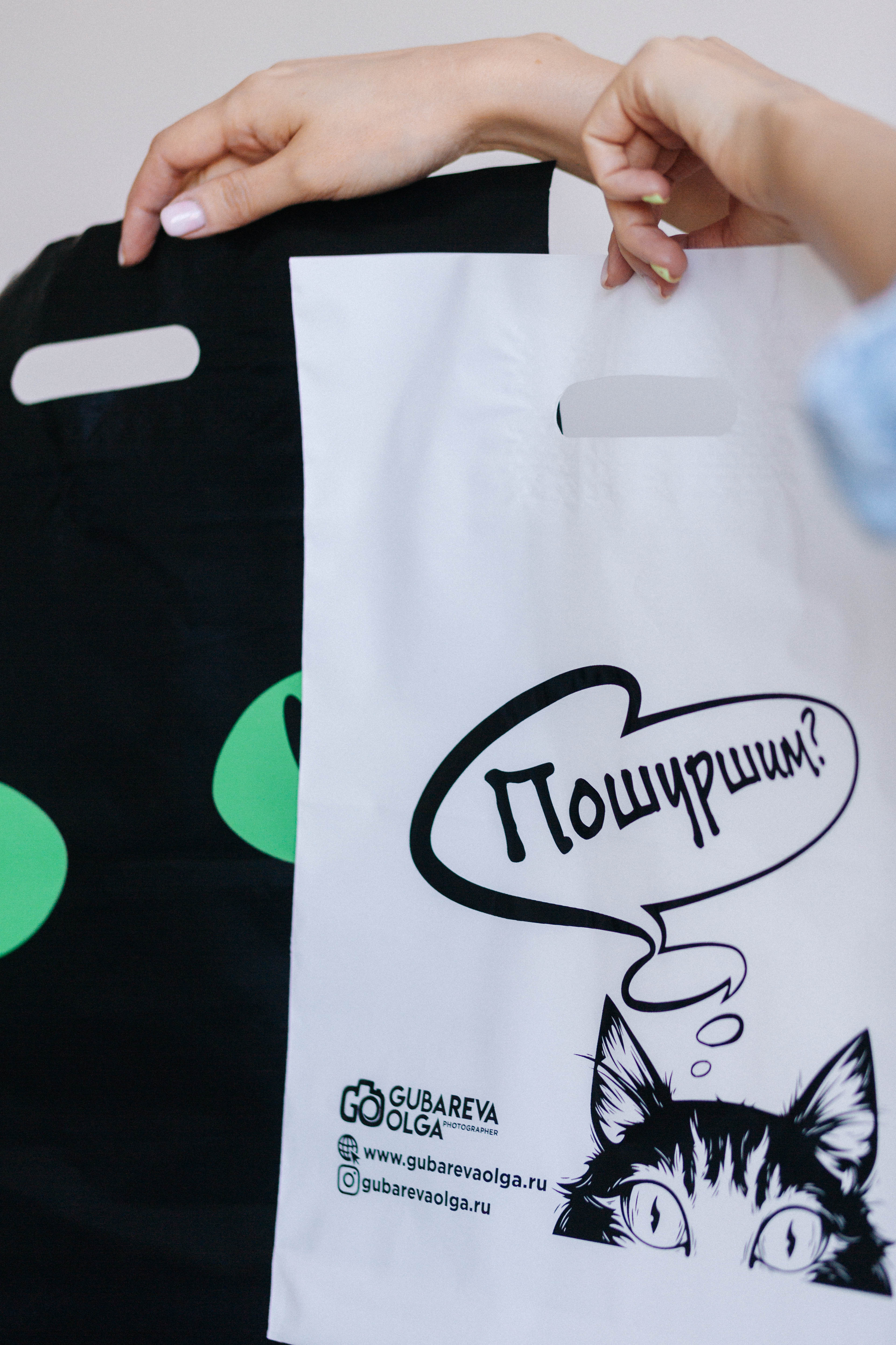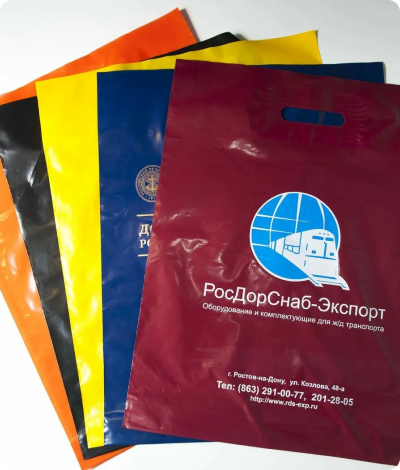 Печать логотипов на пакетах с прорубной ручкой для любых потребительских товаров: одежды, автохимии, лекарств, канцелярии и т.д.