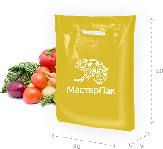 ПВД. 45 мкм. Нагрузка до 7 кг - 40 х 60 см. Боковая складка — 20 см.
